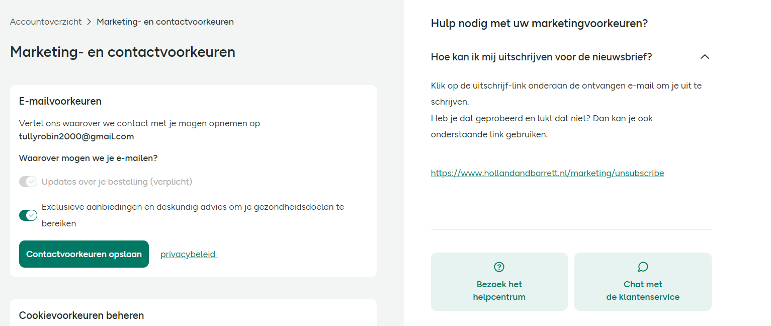 Voor België (NL): https://www.hollandandbarrett.be/marketing/unsubscribe